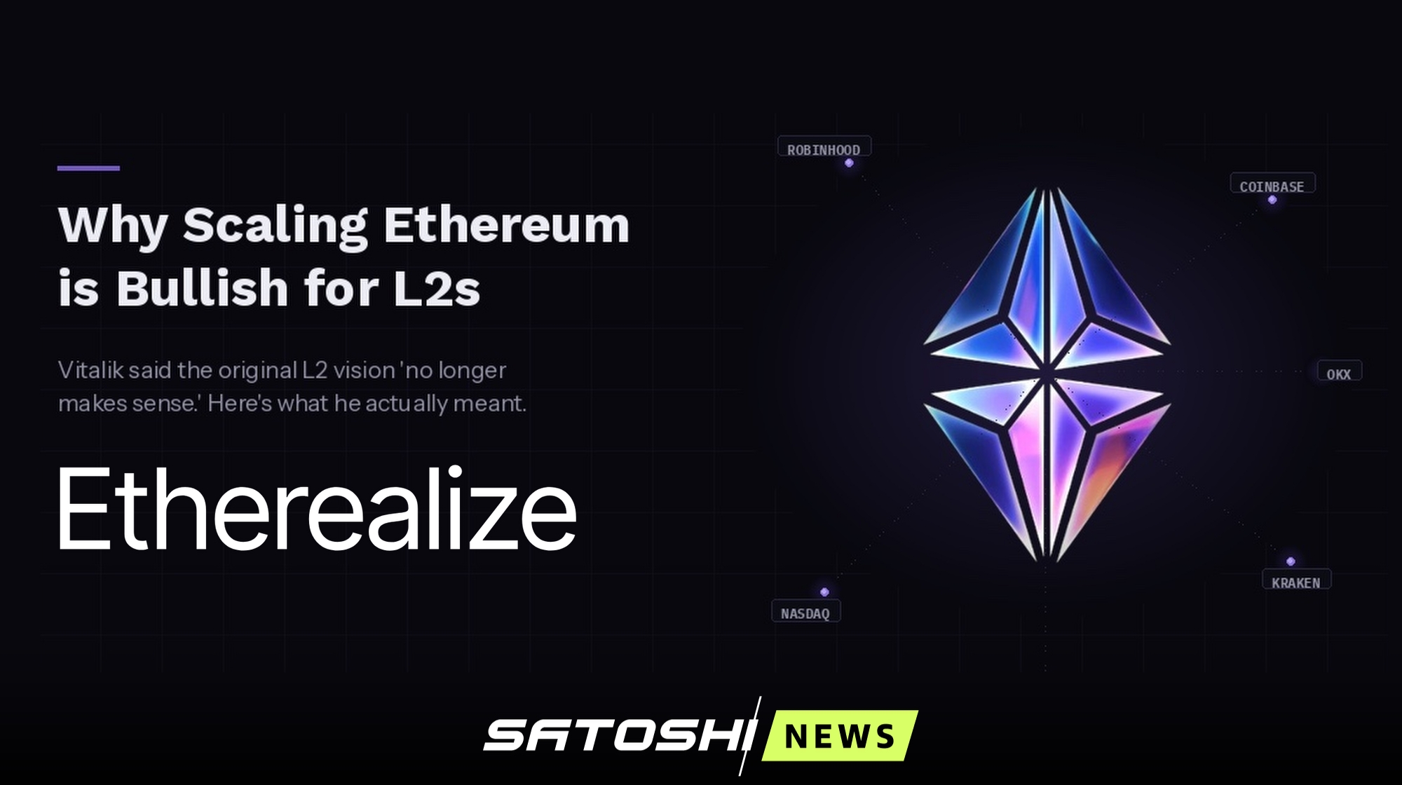 Компания Etherealize опубликовала подробный разбор изменений в стратегии масштабирования Ethereum после поста Виталика Бутерина от 3 февраля 2026 года. В компании считают, что многие неправильно интерпретировали слова Бутерина, восприняв их как отказ от L2. Etherealize подчеркивает, что речь идет не об отказе от L2, а об изменении модели масштабирования Ethereum.